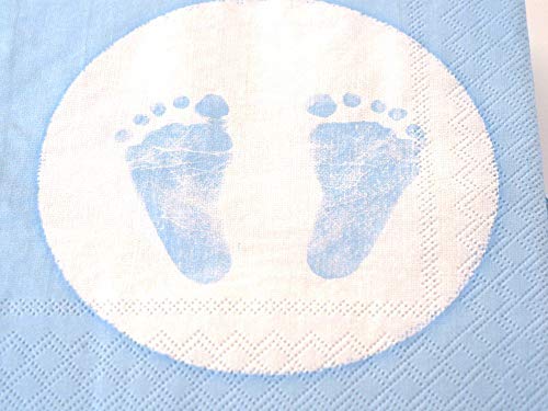 20 Napkins Baby Feet Footprint Light Blue Christening Birth Boy Baby Shower