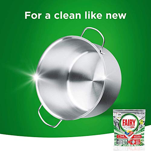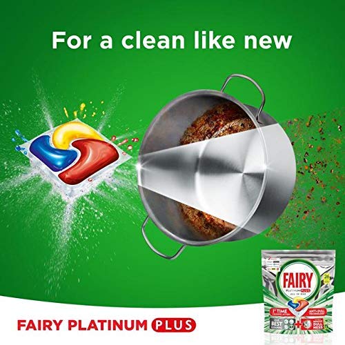 De capsules van afwasmiddel Fairy Platinum All in One Plus kunnen als bord relucient dankzij zijn actiereinigingsdoekje en zijn formule, die vet verwijdert hardnekkig A La Primera. Fairy Platinum maakt de reiniger geschikt voor het koken van alles wat je wil, want het reinigt tot vet het filter en maakt briljante borden vaatwasmachinebestendig en stralend. Zijn hoog oplosbare capsule lost sneller dan tabletten, zodat direct begint te handelen. Voor een uitstekende reiniging. Daarnaast zijn ze zeer gebruiksvriendelijk. Alleen in de vaatwasser moeten worden geplaatst. Zonder envoltorios te verwijderen en geen complicaties. Ook gebruikt de Fairy Platinum vaatwasser voor handwas en verwijdert vet hardnekkig. Formaat: tas met 105 capsules van vaatwasser Lemon.