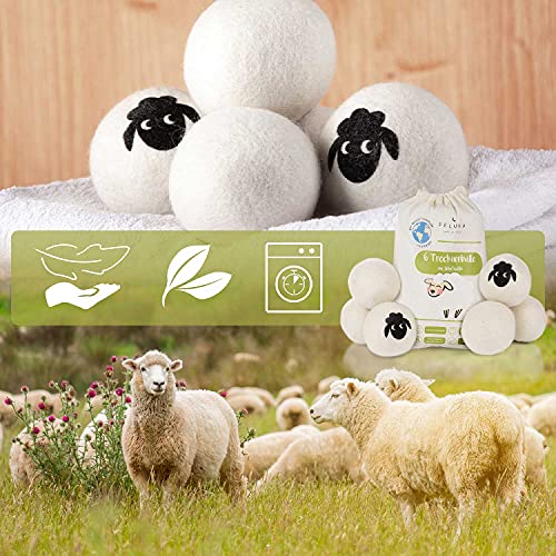 Feluna® Eco Droogballen voor Droogtrommel Set van 6 – Natuurlijke 100% Schapenwol Wasverzachter – Eco Droogballen…