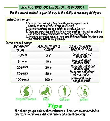 Meestal gebruikt in: kledingkasten, laden, schoenenkasten, kluisjes, nachtkastjes, enz. Om schimmel, deodorisatie en vocht te voorkomen. Kan ook in de auto worden gebruikt: om schadelijke gassen te verwijderen, zoals rook, brandstofgeur, enz.