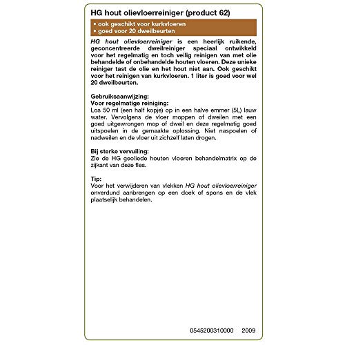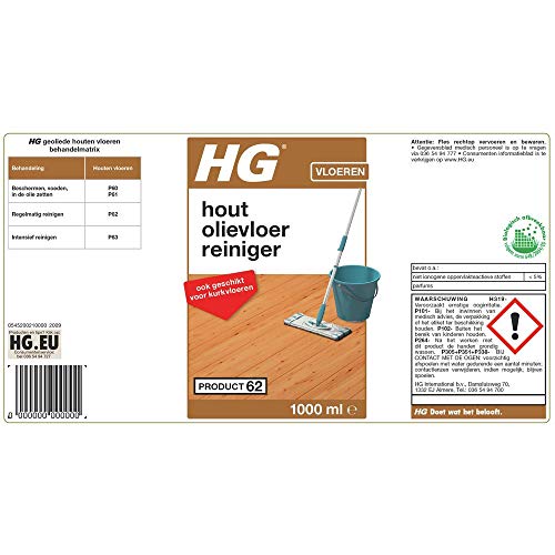 HG houten vloeren olievloer reiniger is een ideale vloerreiniger voor het regelmatig onderhoud van uw met olie behandelde vloeren. De zeer geconcentreerde formule is zacht voor de olie en het hout, maar laat uw vloer er weer uitzien als nieuw. HG houten vloeren olievloer reiniger is ook geschikt voor kurkvloeren en zorgt voor een frisse geur. Eén liter van dit product is voldoende voor twintig dweilbeurten. Regelmatige reiniging en onderhoud van uw houten vloeren met een goede vloerreiniger verlengen de levensduur van uw vloer.