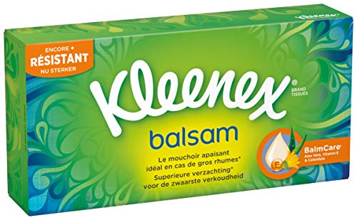 Kleenex Balsam tissues bevatten een laagje verzachtende calendulabalsam. Dat voorkomt een rode, schrale neus bij verkoudheid en griep. Ook verkrijgbaar als zakdoekjes.