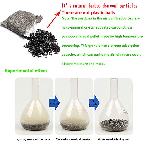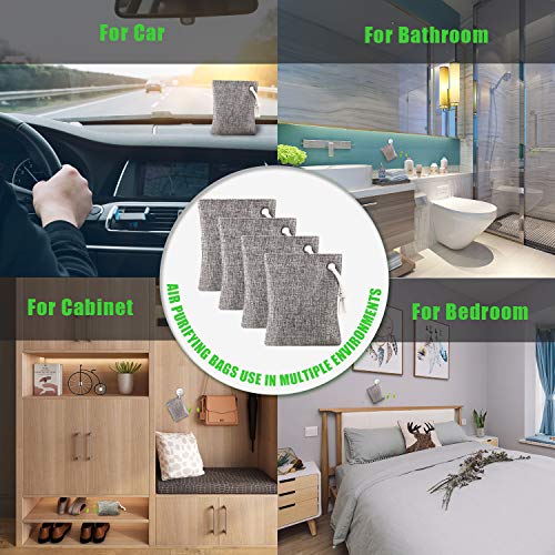 🏡♻ LUCHTZUIVERENDE ZAKKEN GEWELDIG WAARDEPAKKET 🏡♻ 4 stuks voordeelpakket biedt 860 g bamboe houtskoolzakken. Allemaal verpakt in een verzegelde linnen tas met een ring aan de bovenkant voor eenvoudig ophangen aan een hanger of haak. Voldoende grootte om geuren op te nemen in auto’s, kasten en andere gesloten gebieden die de neiging hebben om vocht en geuren te verzamelen, regenachtige dagen kunnen de vochtigheid in de kast effectief verminderen om een vochtbestendig effect te bereiken;