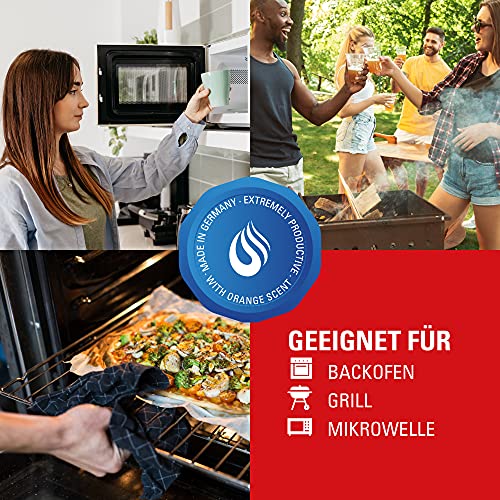 Sinaasappelgeur – Door het gebruik van natuurlijke sinaasappelgeur, gewonnen uit sinaasappelschillen, laat de oven- en grillreiniger een aangename, frisse geur achter.