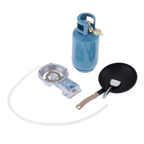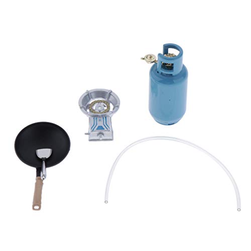 Specification: Perfeclan 4 stuks miniatuur kookgerei metaal gasfornuis + gastank + pan + schep meubelset voor 1/12 poppenhuis keuken…