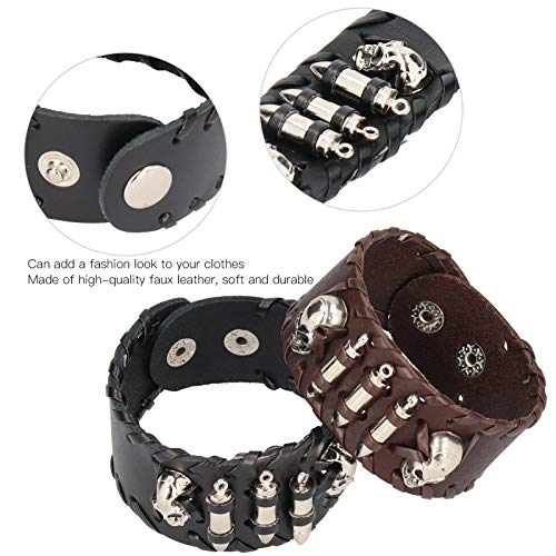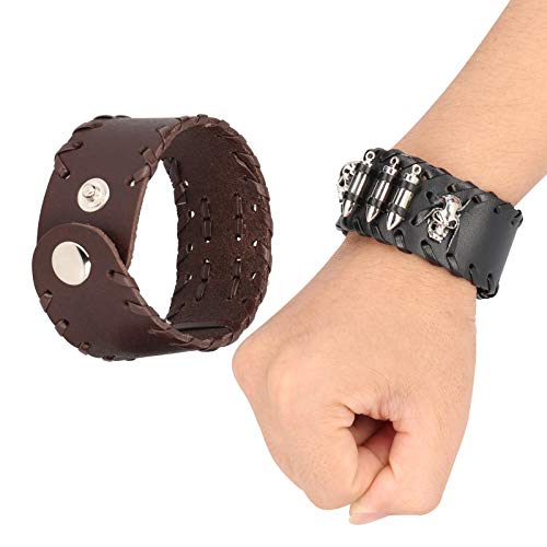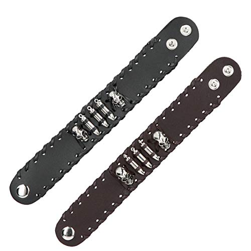 Skull Punk lederen armband, zachte 2-delige vintage heren lederen armbanden, voor mannen vrouwen