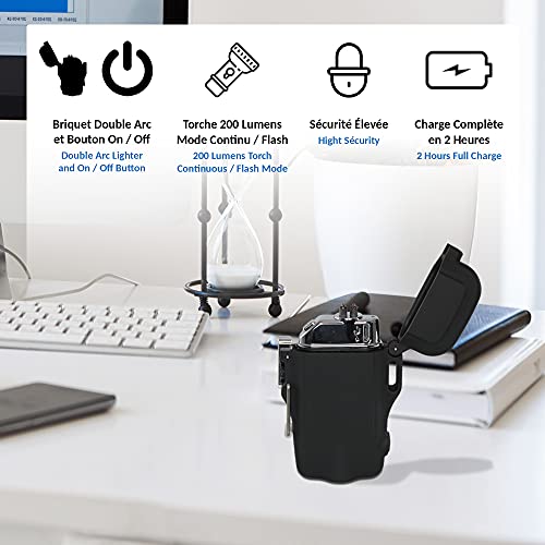 AUTONOME en VEELZIJDIG: 2 verlichtingsmodi: continue modus en flitsmodus waarmee u uw aanwezigheid kunt signaleren. Eenmaal volledig opgeladen in slechts 2 uur, kunt u de aansteker 40 keer gebruiken en de zaklamp maximaal anderhalf uur gebruiken.