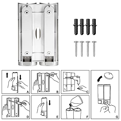 Specification: Splenssy Handzeepdispenser, wandmontage, dubbele vloeibare shampoo-douchegel-toevoer, handreiniger, washroom…
