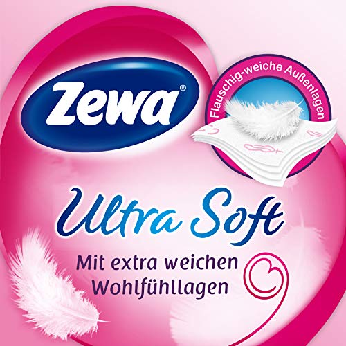 ZEWA Ultra Soft toiletpapier – zachte veiligheidstijden 4 Het Ultra Soft toiletpapier verwent je met 4 extra zachte feel-good lagen terwijl het sterk en veilig blijft. Zewa Ultra Soft wordt gepresenteerd in een innovatieve verpakking met een praktisch handvat en handige opening. Het in reliĂ«f gemaakte verenpatroon en het logo in delicaat roze onderstrepen de ultieme zachte structuur van Zewa Ultra Soft. Ultrazacht comfort Extra zacht en tegelijkertijd scheurvast & amp; sterk absorberend Kwaliteit comfortlaag Geurvrij 16 rollen van 150 vellen Verzorging volgens het Zewa feel-good principe – Veel meer dan alleen routine. Met droog comfort toiletpapier in vele soorten en vochtige toiletpapier van Zewa wordt de dagelijkse zorg getransformeerd in een terugkerend moment van welzijn. Het gaat niet alleen om een ​​veilig gevoel van absolute reinheid, maar ook om een ​​onverwacht verfrissende ervaring. Met sensuele zachtheid, aangename texturen, verzorgende lotion en een fijne geur tovert Zewa een nieuwe wereld van zorg in uw badkamer tevoorschijn. Ontdek het zelf!